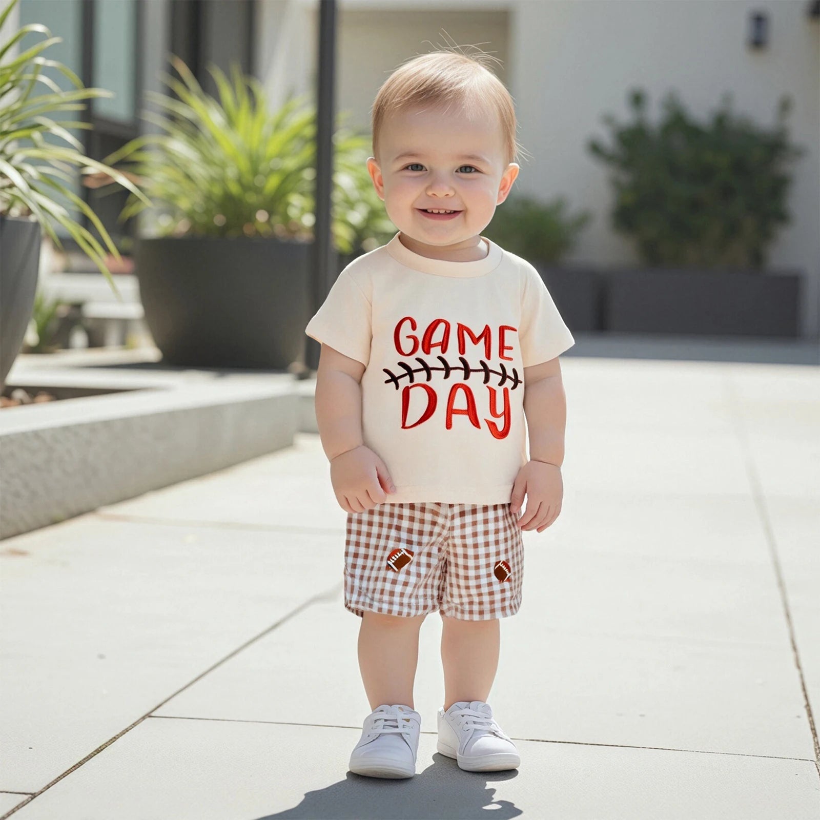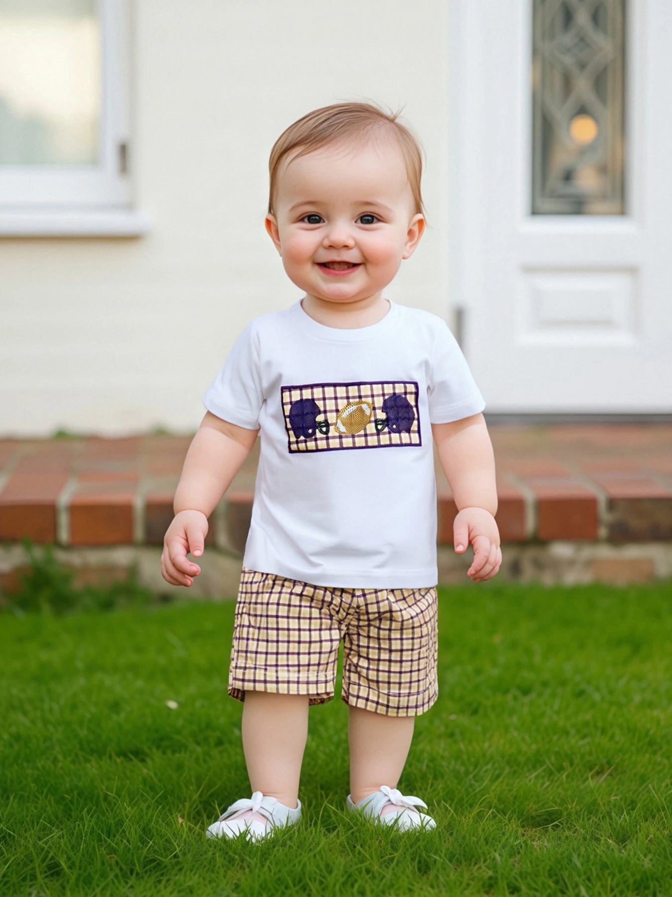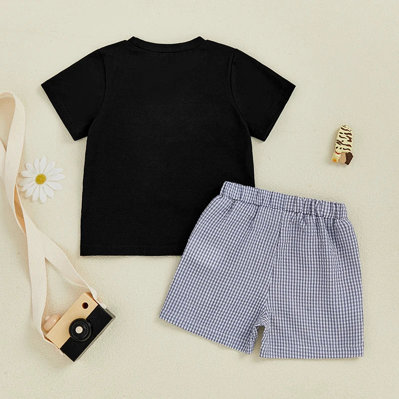 Infant Boys Soccer Tee & Checkered Shorts Set – 2PC Summer Outfit