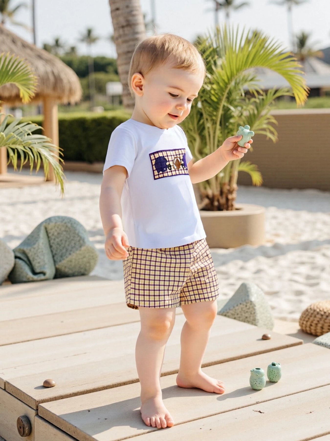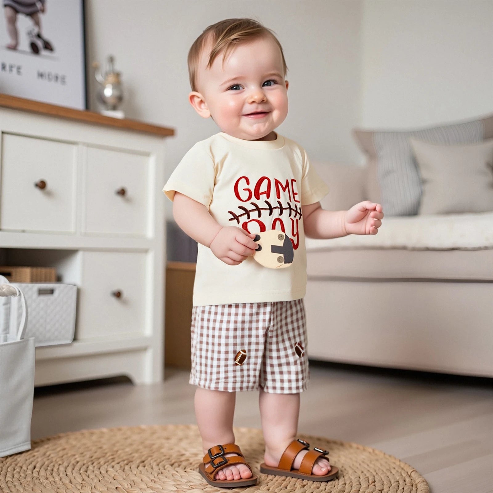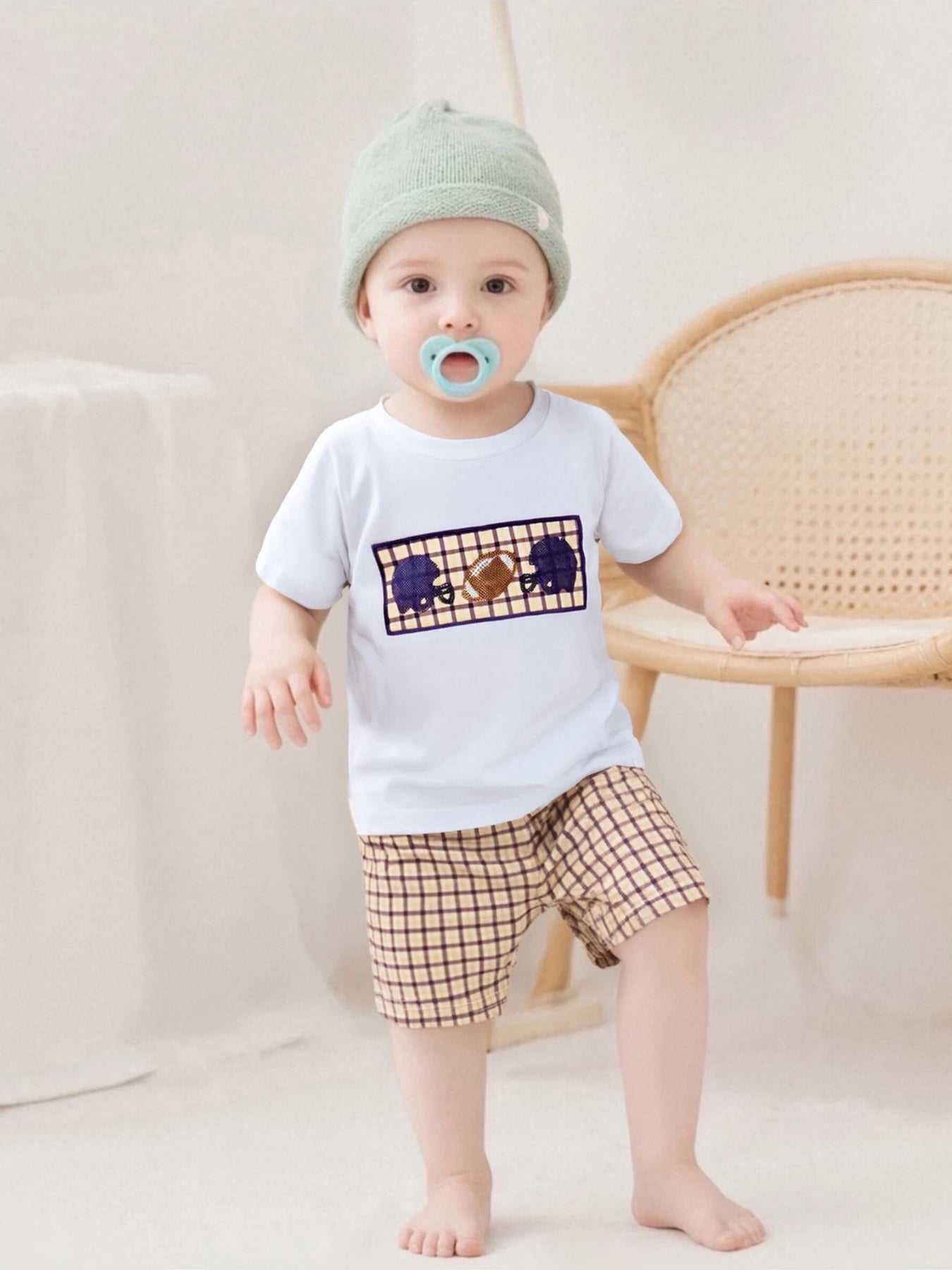 Infant Boys Soccer Tee & Checkered Shorts Set – 2PC Summer Outfit